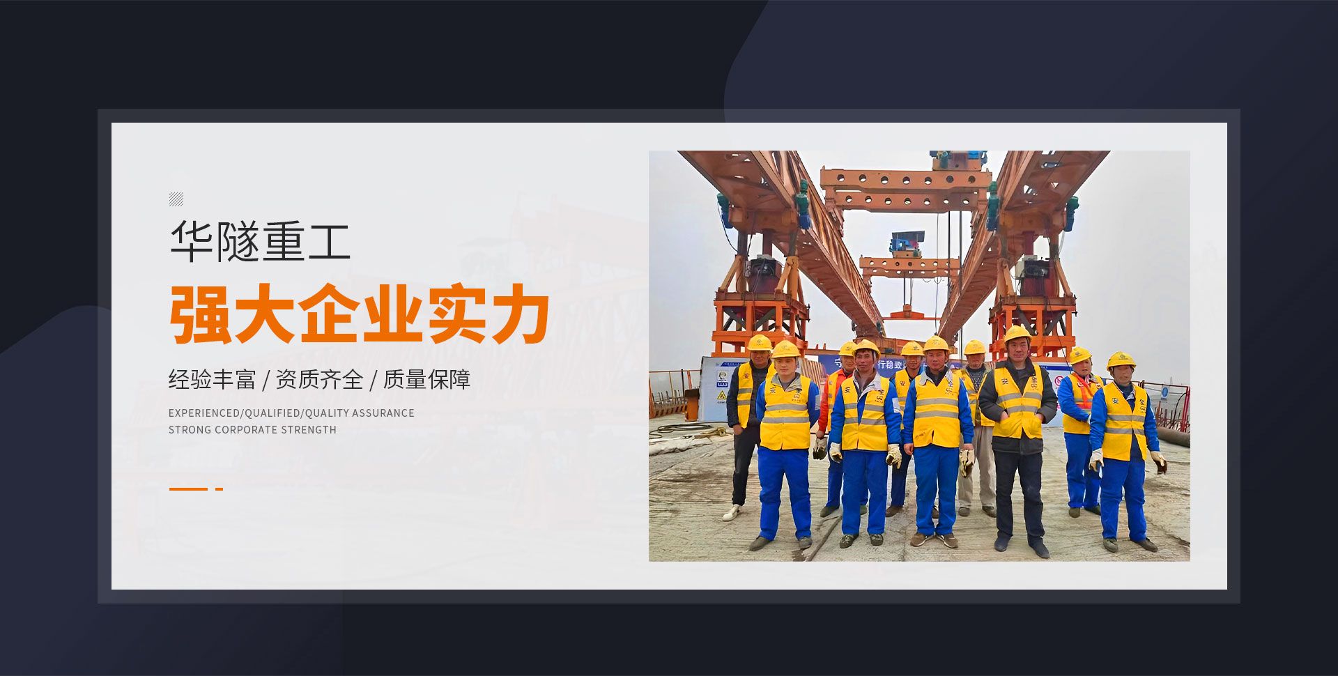 河南華隧重工機械裝備有限公司主要從事通用門式起重機、橋式起重機、電動單梁起重機,輪胎式起重機、架橋機、提梁機、遠梁平車、鋼絲繩電動萌蘆、卷揚機、起重配件制造、銷售:起重機械租賃、安裝和維修,起重設備園收,機械設備維修,鋼結構工程承包,橋梁工程及技術咨淘服務,銷售五金制品、機電設備:建設工程監理,建設工程設計,各類工程建設活動,建筑勞務分包,建筑物折除作業,施工作業,工程管理服務,土石方工程施工,裝如發運?! 」疽淹ㄟ^IS0國際質量、環境、健康與安全三合一標準認證,特種設備制造許可證和特種設備安裝改造維修許可證。擁有完熟的質量管理體系。嚴格的管理制度,強大的生產能力和先進的檢測手段,在保證產品質量的同時,也具備了極強的市場競爭力?! 」緢猿挚萍紕撔聻槔砟睿a品質量為核心,注重信譽,建立了減信可靠、快捷、思速。便利周到的售后服務網絡?! ∥覀儞碛械募夹g專家和技術服務隊伍為客戶提供充善的售前技術支持和全天候的售后服務體系,讓您無后顧之憂,享受一站式的超值服務?!  叭A隧重工,伴您成功“是華隧重工永遠的宗指,真被的希望與各界朋友攜手并進。共創輝準!